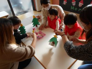 いちご組さんもおうちの方を一緒にツリー作り♪