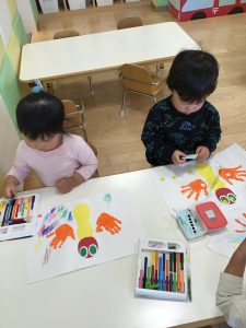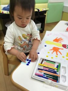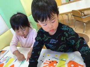 集中している子は活動の最初から最後までお絵描きとシール張りを楽しみました!!