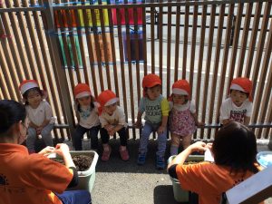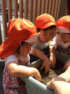 種を蒔き土をかけるとニッコリ嬉しそうでした😄