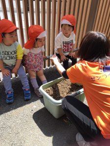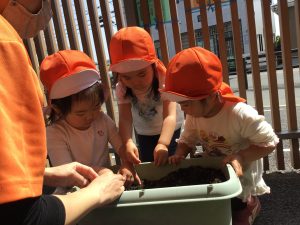 子ども達に絵や絵本で説明し種を見せるとワクワクのお顔🤩