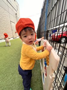 前回は初めての園庭で、最初は緊張していたいちご組さんでしたが、
