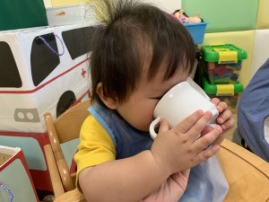 コップも上手に持ってお茶や豆乳を飲んだり!