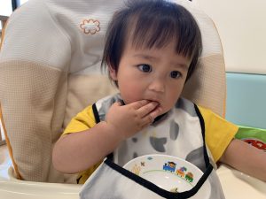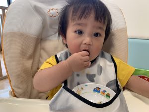 自分で食べる事が大好き、お給食、おやつが大好きなもも組さんのお友だち👦🏻🌸