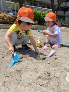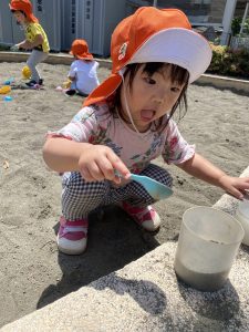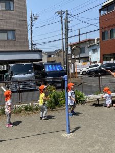 暑い日もあればまだ涼しい日もあるので戸外遊びでの活動時間はその日によって