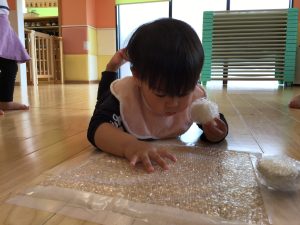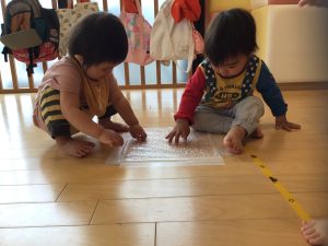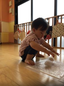 床に敷いたプチプチを一つずつ丁寧に潰してみたり、