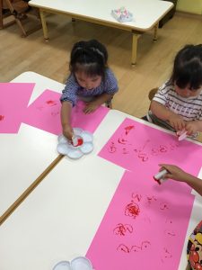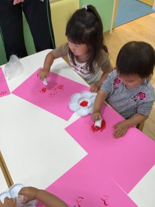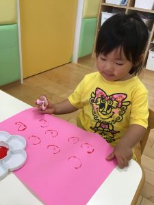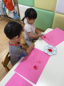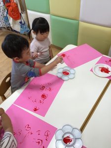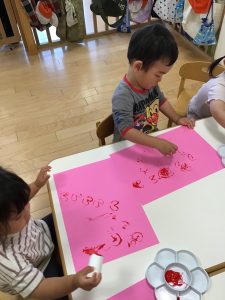 子どもたちにやり方を説明すると上手にスタンプしてくれましたよ😍