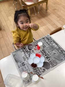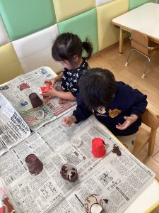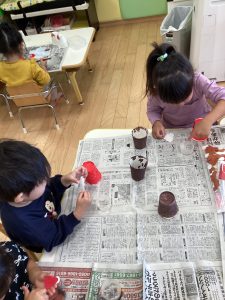 まずは紙コップに絵の具で色を塗りました🖌
