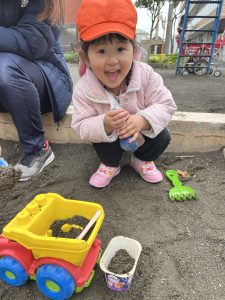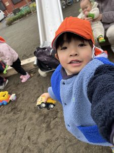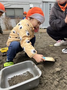 車を使って遊ぶお友だちは、ダンプカーに砂を載せて出発🚗💨