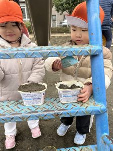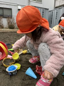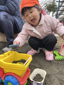 公園では容器に砂を入れて、『いまぷりんつくってる!』と教えてくれたり、