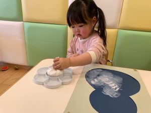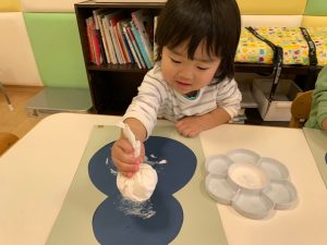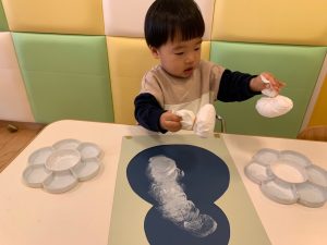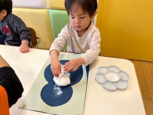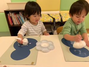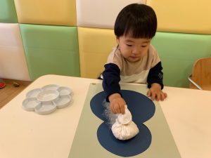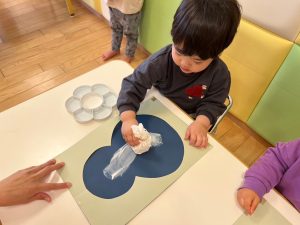 綿の入ったタンポでスタンプする感覚が面白く、皆んな集中していました。