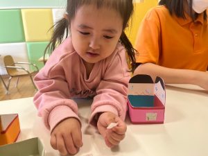 『これきれいだよ!』とお友だち同士教え合って、同じのを使ってみたり、