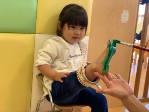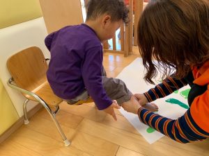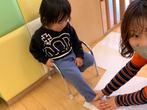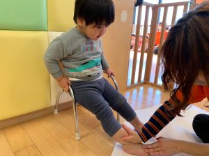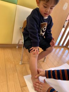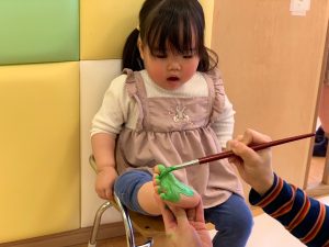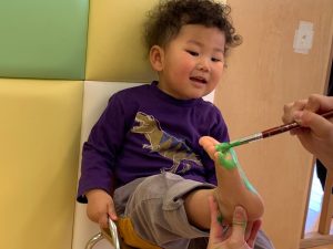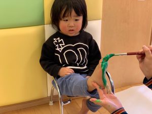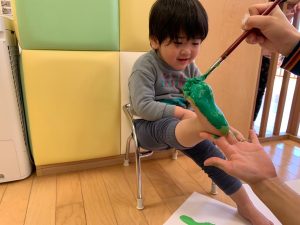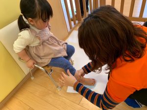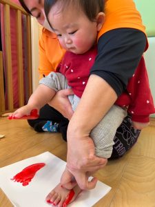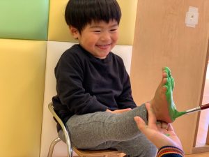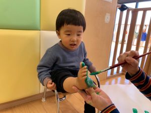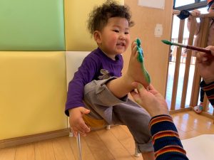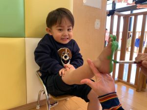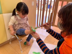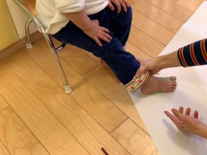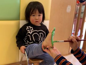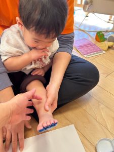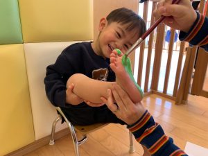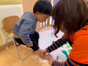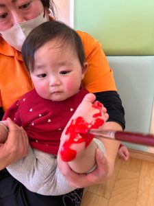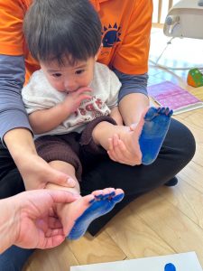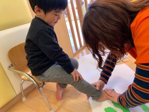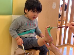 足形を取るのに泣いてしまっていたお友だちも今では少し笑顔が見られるようになったり