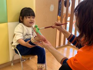半年前は泣いて絵の具を塗られるのを嫌がる子も多かったのですが、