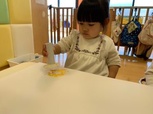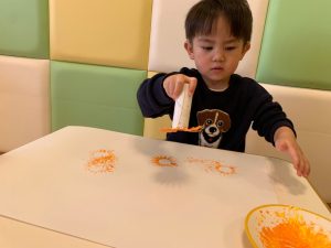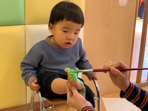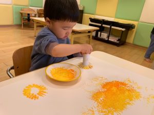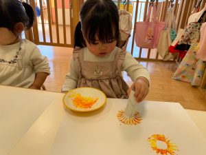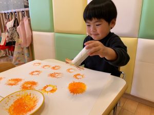 指と指でつまんでスタンプしていた子も、今では手が汚れても楽しみ