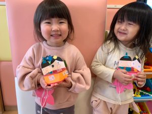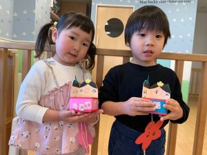 今週のもも組さんは3月の製作でお雛様とお内裏様を作りました。