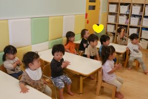 保育士が手拍子をしながら「ハッピーバースデー」を歌うと、