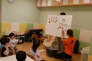 保育士の出し物の「どんないろがすき」のパネルシアターを見たりして楽しみました♪