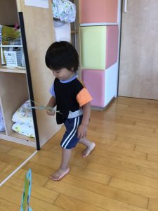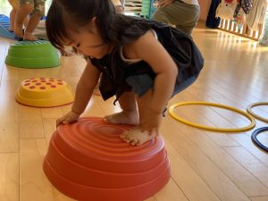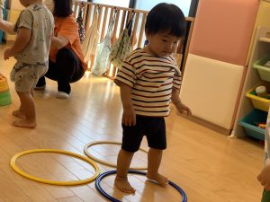 飛び石や平均台、フラフープを準備して好きな場所に行き
