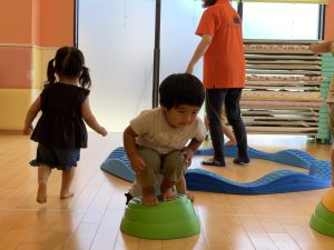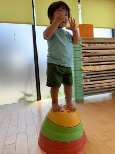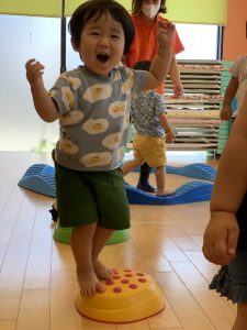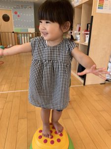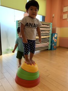 バランスを取りながら平均台や飛び石に登ってみたり、ポーズを決める子も✌️