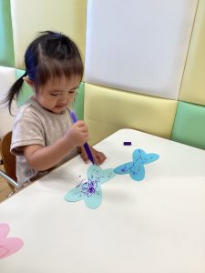 メガネを作り終わると、今度は羽にお絵描きをします🪽