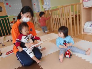 慣らし保育の子は、少し緊張している様子でしたが、自分から遊び始めたり、お友達と