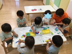 りんご組さんは、体を動かした後は、粘土をして遊びました♪