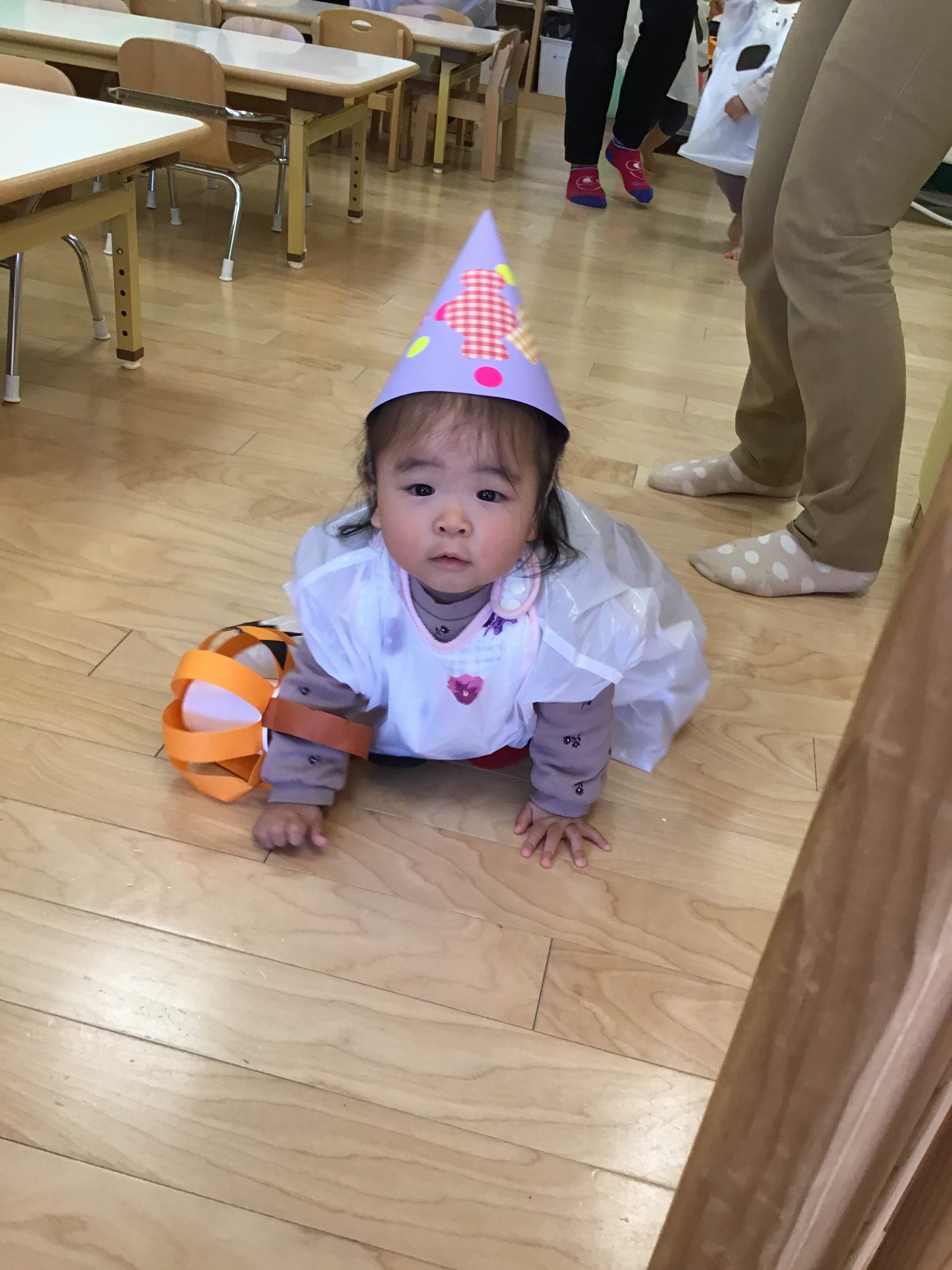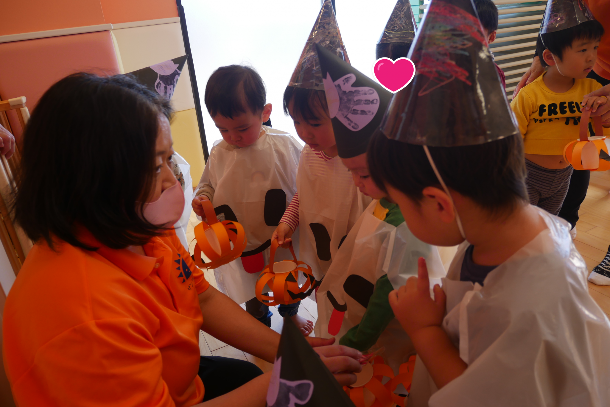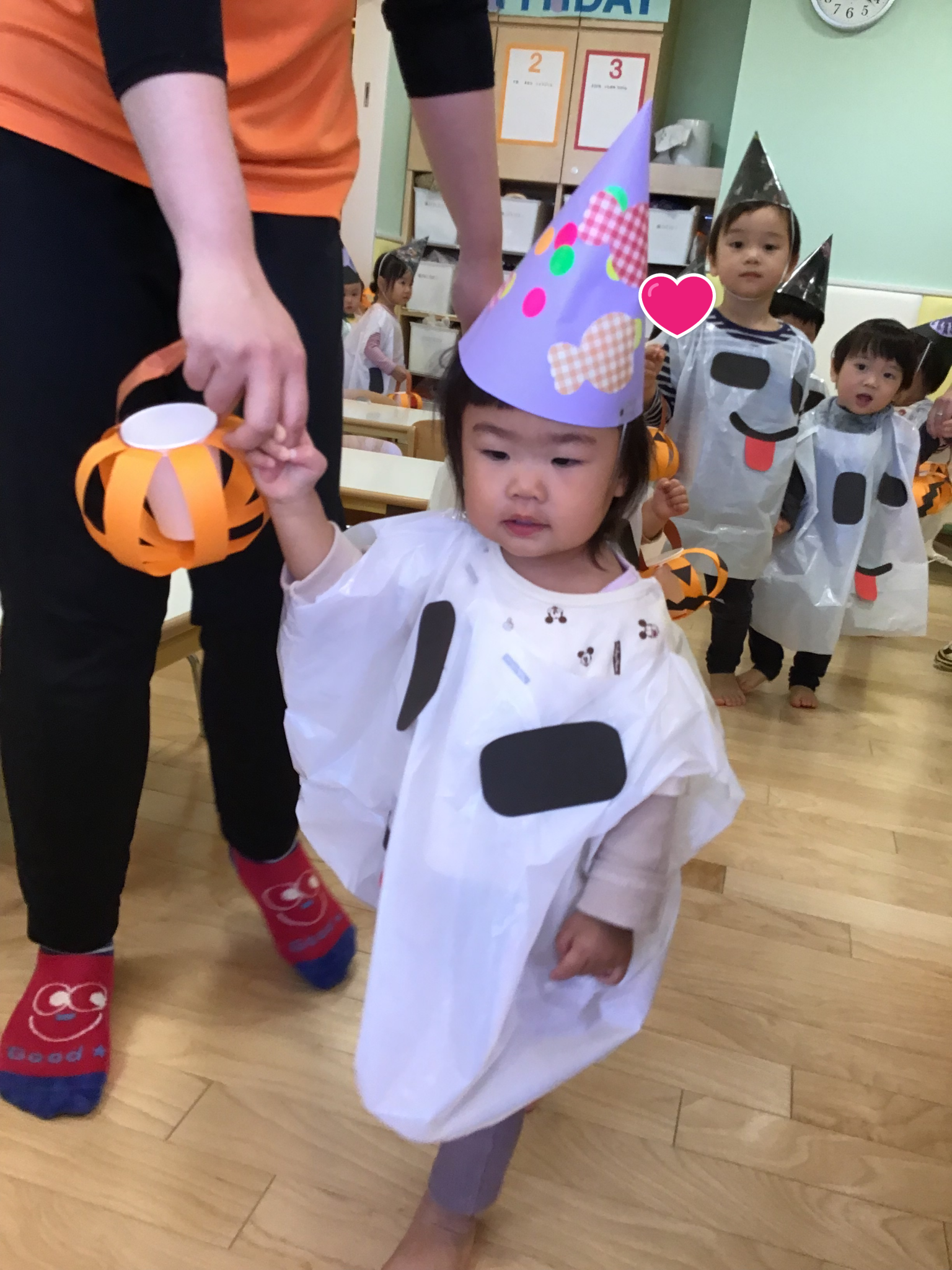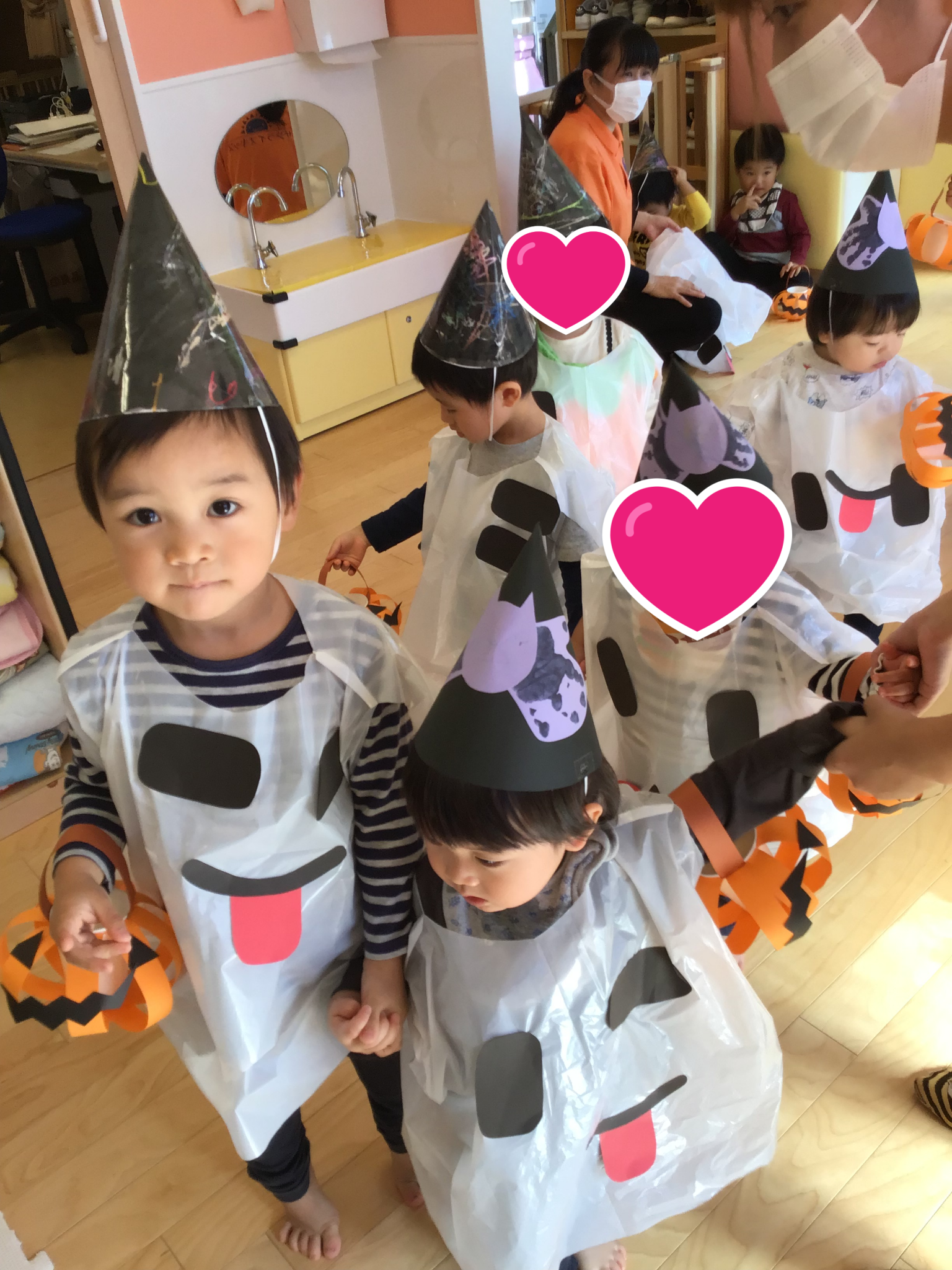 風が強く室内でのハロウィン会でしたがみんな衣装を着たり
