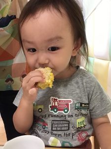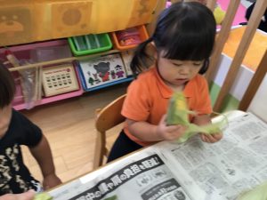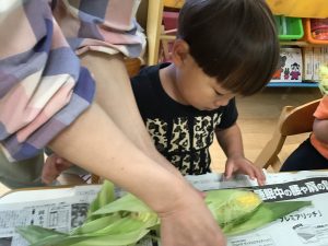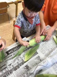 りんご組さんは、食欲の一貫として、トウモロコシの皮剥きをしました?