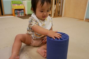 手先も器用になり、ポットン落とし遊びを楽しむ子、ハイハイ・つかまり立ち・腹這い遊びが上