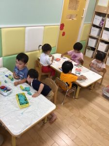 テーブルでグループに分かれて、自分で選んだ好きな遊びを楽しみました✌️