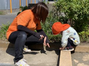 アリの巣を見つけると、保育士を呼んで一緒に観察をしたり
