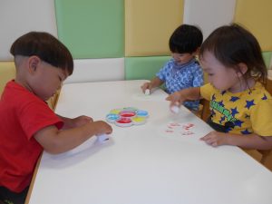 暑い日が続いていますが、もも組さんは元気いっぱい室内遊びを楽しんでいます?