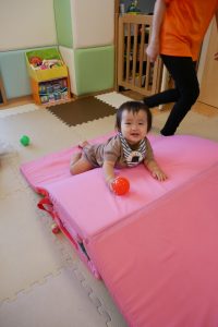 マットのお山をハイハイで登って行ったり、ボールを転がして追いかけたり、腹這いになって足をバタバタ動かしたりと、たくさんの笑顔を見せてくれています?