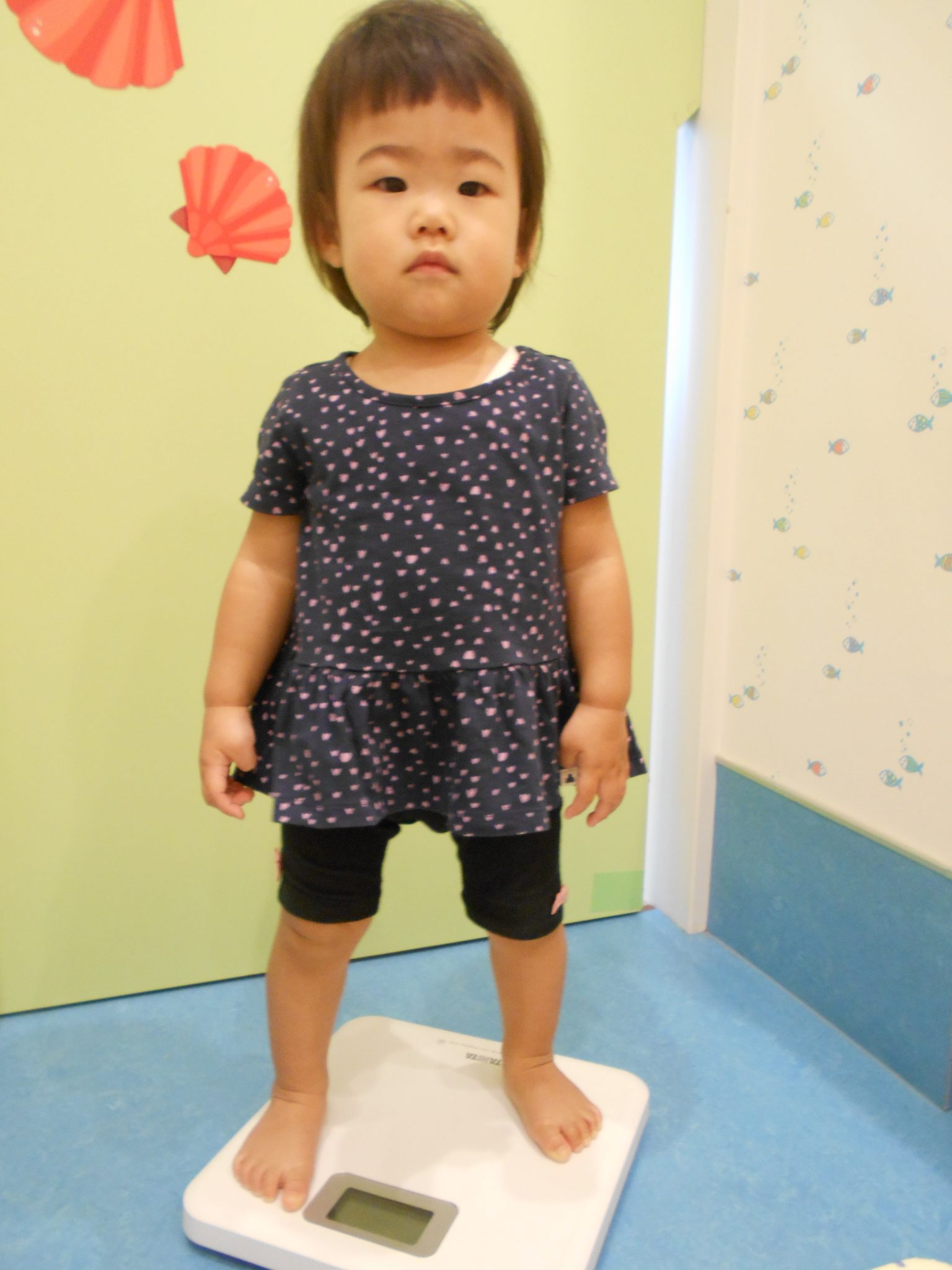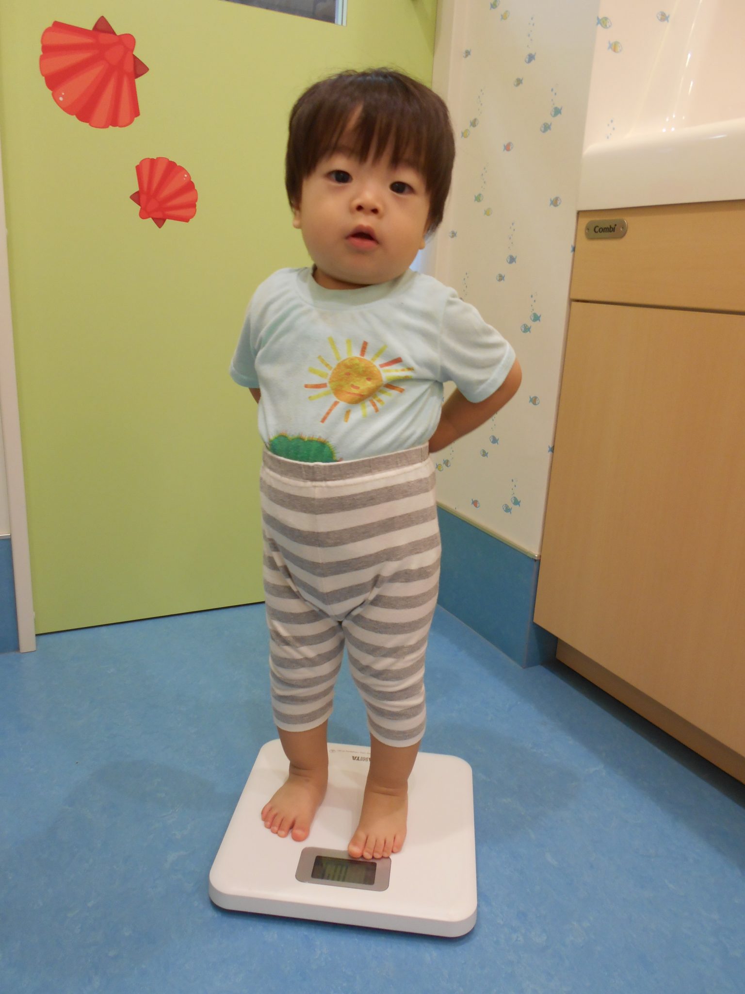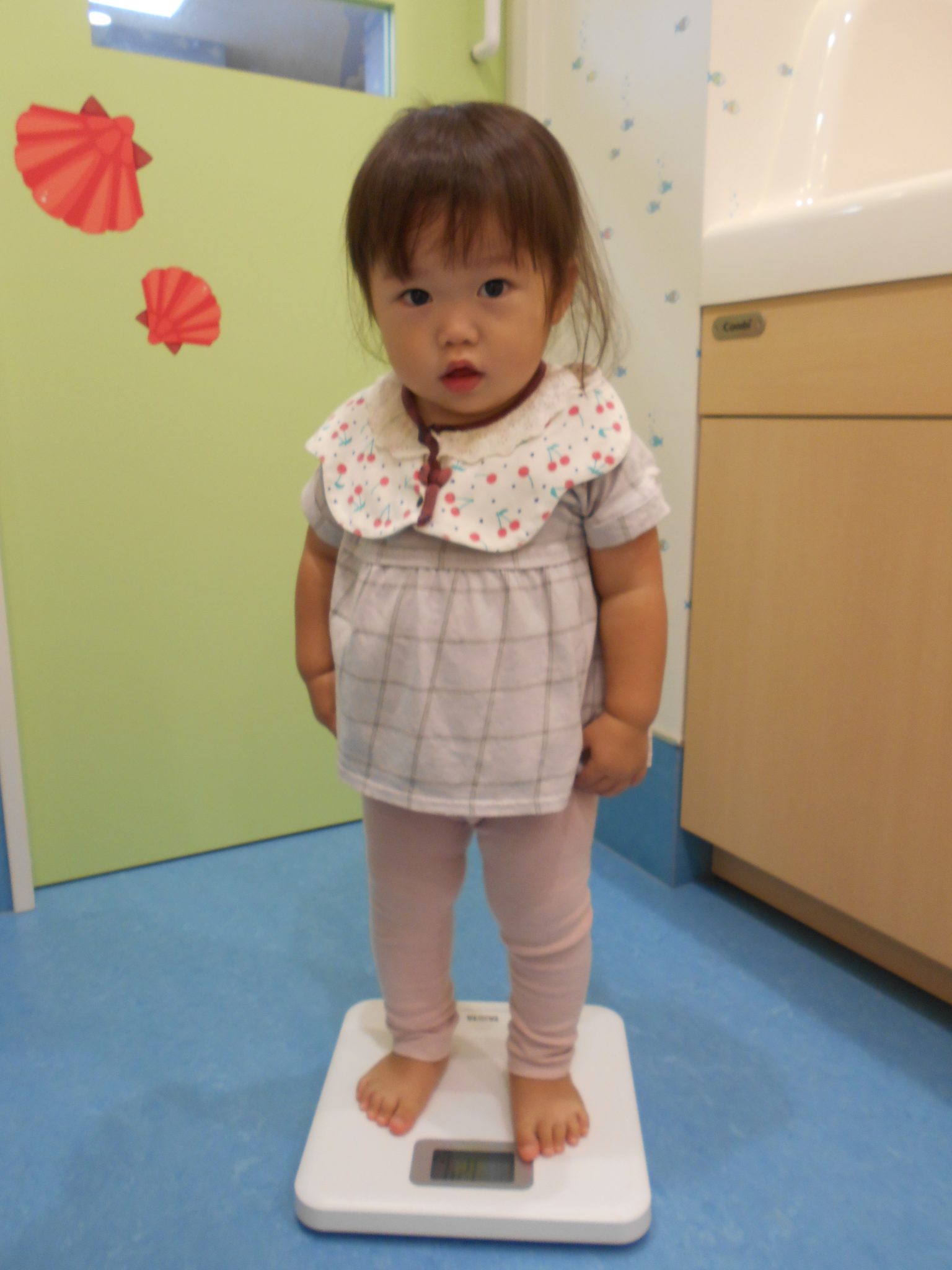 今週はもも組さんとりんご組さんの身体測定の様子をお伝えします?
