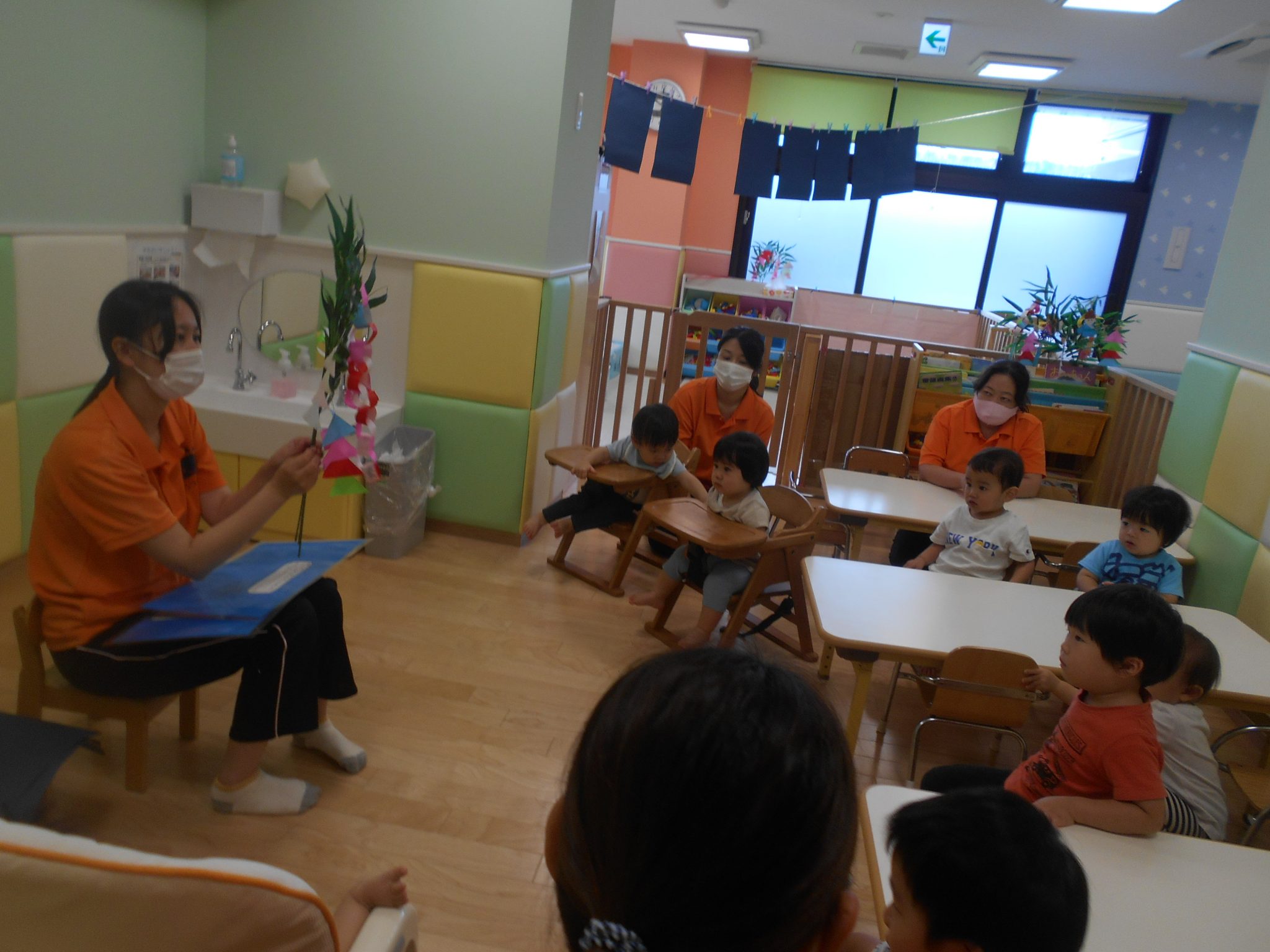 りんご組さんのお部屋に集まりみんなで七夕のお話を聞きました!