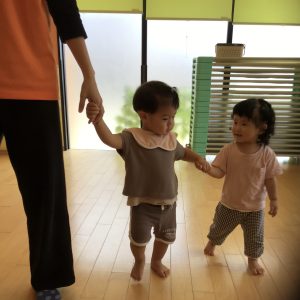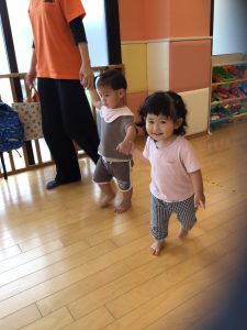 手を繋いでお散歩に行く練習で“さんぽ”の音に合わせてお友だちと手を繋いで歩くいちご組さん🏃♀️💨