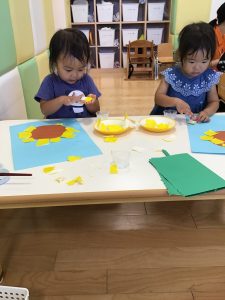 8月の製作でひまわりを作りました。