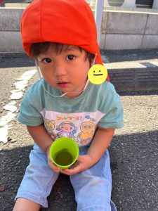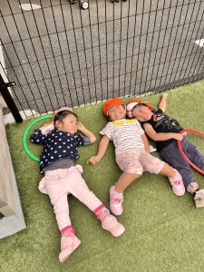 園庭では最近お友だちと寝転がったり、カメラから逃げる遊びが流行っています♪