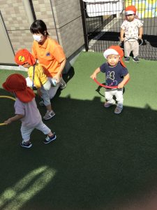 園庭ではフラフープやボールを蹴って遊びました🎵