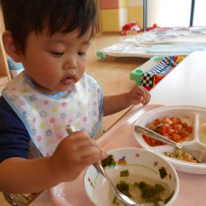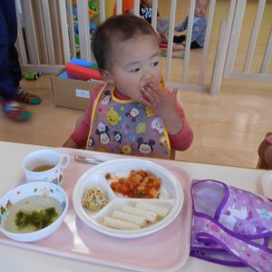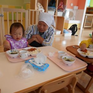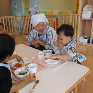 給食を食べているとお給食を作ってくれている栄養士さんが「どう?美味しいかな?」と