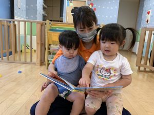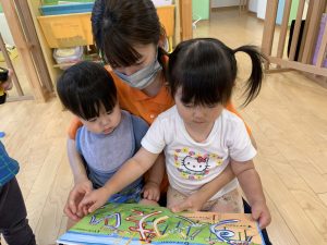 まずは自分でペラペラとめくって楽しむりんご組さんのお友だち👧🏻👦🏻