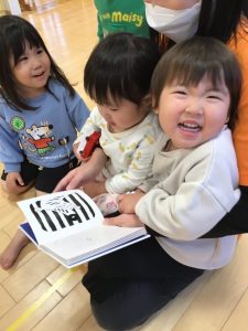 動物が大好きな園児さんは、『わにだー!』『なんでバナナなんだろうね〜』と、