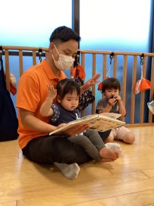 子どもたちは保育士に持って行って、膝で歌ってもらったりしています🎶