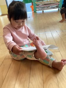 みんなも真似してペコっと頭を下げ合ったり、お友だちとお尻を当て合ったり