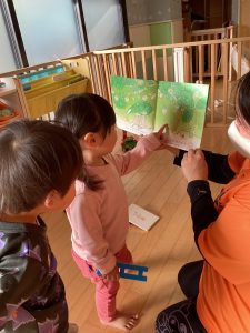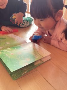 と一緒に読んでいたお友だちとお話ししていました🤭