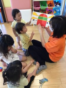 それが面白いらしく、りんご組さんのお友だちも真似をして『おっきーい!』『ちいさい』と