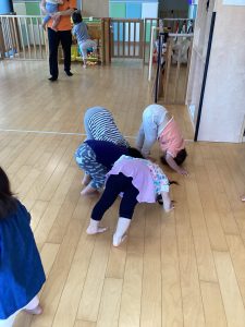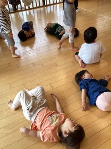 ただ読むだけではなく、絵本に出てくる生き物たちの動きを真似して遊んでみます。