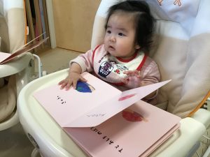 開くと絵が出てくるのが楽しいようで、指を上手に使ってページをめくる子もいました?
