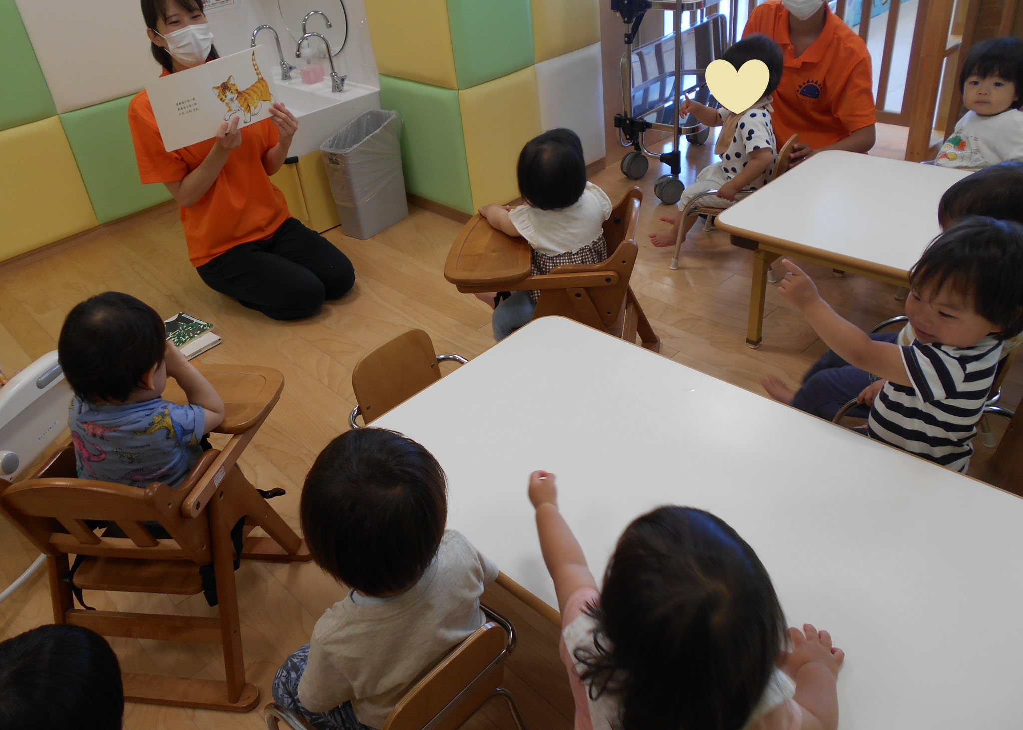 絵本をひらくと早速「にゃんにゃん!」と指をさして嬉しそうに教えてくれる子ども達(^0^)