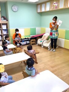 動物たちの寝方の真似っこをしながら体を動かして読み聞かせを楽しんでいました